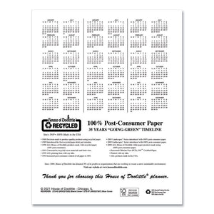 Vertical format with one weekday per column, quarter-hourly appointments and six days per week. Weeks start on Monday with a one-week per two-page layout. Three-year reference calendar page aids in long-range planning. Includes a double-sided storage pocket. Additional page lists important holiday dates over a span of three years. Features printed monthly indicators to help you quickly find the date you need. Made entirely of recycled materials.