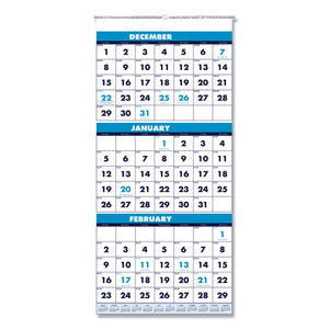 Recycled Three-Month Format Wall Calendar, Vertical Orientation, 12.25 x 26, White Sheets, 14-Month: Dec 2024 to Jan 2026