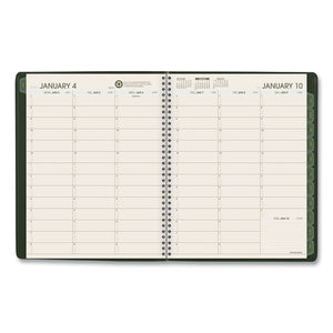Recycled Weekly Vertical-Column Format Appointment Book, 11 x 8.25, Green Cover, 12-Month (Jan to Dec): 2025