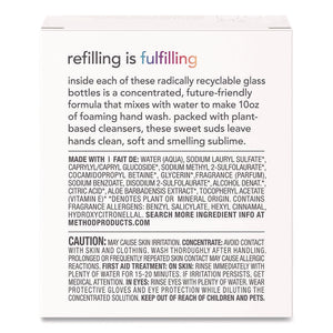 Concentrated foaming hand soap refill is perfect for everyday use. Diluted formula is dermatologist tested for sensitive skin and made with plant-based cleaners. Made without parabens or phthalates. Cruelty free, tested by people, not on animals.