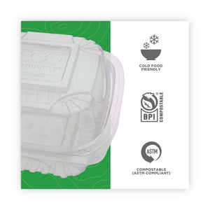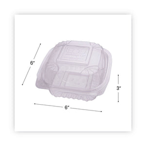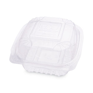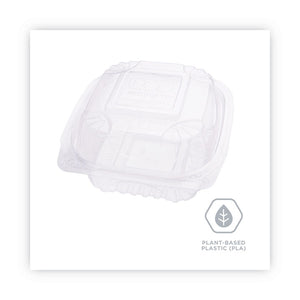 Renewable and Compostable Clear Clamshell Hinged Food Containers, 6 x 6 x 3, Plastic, 80/Pack, 3 Packs/Carton