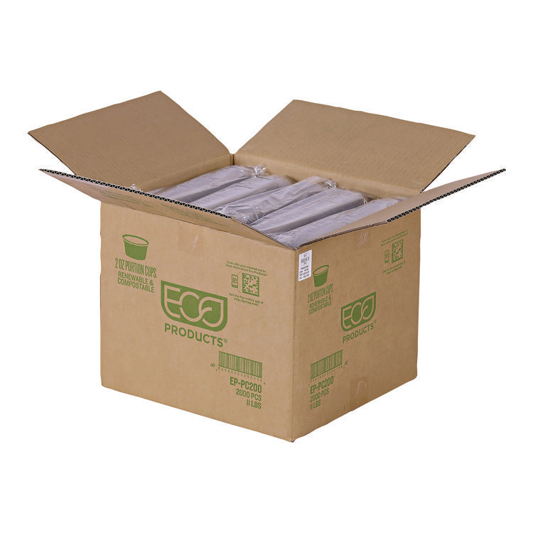 Renewable and Compostable Portion Cups, 2 oz, Plastic, Clear, 100/Pack, 20 Packs/Carton