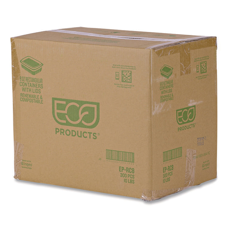 Renewable and Compostable Rectangular Deli Containers with Lid, 8 oz, 3 x 4.83 x 1.5, Clear, Plastic, 50/Pack, 4 Packs/Carton