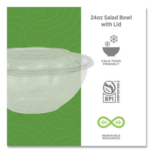 Renewable and Compostable Salad Bowls with Lids, 24 oz, Clear, Plastic, 50/Pack, 3 Packs/Carton