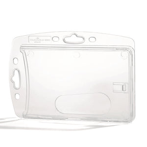- Enclosed shell-style badge holder is crafted with high-quality acrylic for superior protection and durability.