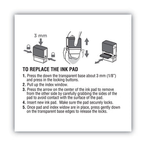 Changing ink pads is easy with this snap in, snap out cartridge style. Delivers up to 5,000 impressions.