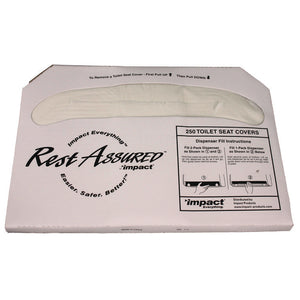 The Rest Assured™ seat covers create a positive restroom experience for guests by keeping the washroom clean and safe. The self-disposing design allows for flushing without touching. These seat covers fit most standard seat cover dispensers to make implementation convenient.