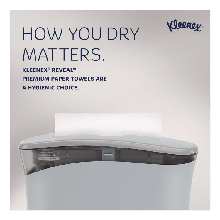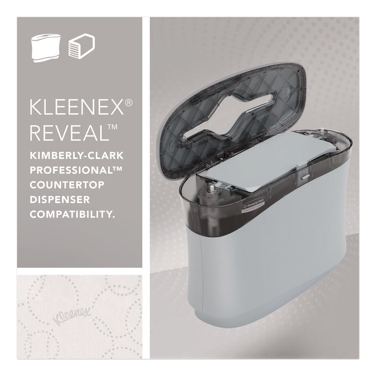 Using Kleenex Reveal Hand Towels with the Kleenex Reveal Countertop System offers your restroom guests an upgraded hand drying experience. Visitors take a towel without taking a step, so you can say goodbye to water splashes and sprays on floors and countertops. You'll say hello to a solution that elevates the cleanliness and image of your facility by dispensing superior Kleenex Hand Towels. The white towels are embossed with the trusted Kleenex logo and offer a balance of softness and strength to dry hands thoroughly. These towels dispense one at a time, so you only touch the towel you use. Throw away those germs and you'll enjoy peace of mind when it comes to the hygiene of your staff and your guests.