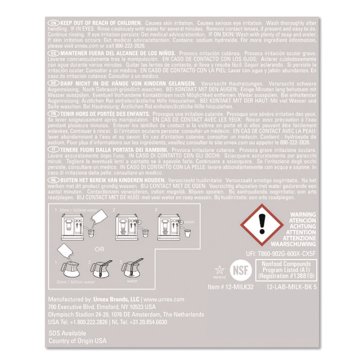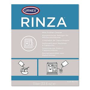 Urnex® Rinza breaks down milk protein buildup. Cycles through auto frothers for easy cleanup. Also cleans traditional steam wands and steel pitchers. The built-in measuring device delivers over 30 uses per bottle.