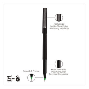 Stock your office, home or classroom with Roller Rollerball Stick Pens from uni-ball featuring strong, long lasting tips. These rollerball pens deliver the silky-smooth glide of a fountain pen without smudging for effortless writing. Roller pens produce neat and precise lines for intricate writing, making it easy to create super fine details in your drawings and diagrams. Capped roller pens are useful for a variety of tasks from note taking to signing checks and legal documents to uniquely embellishing fun and creative writing projects. Innovative uni Super Ink technology forms a strong bond with the paper, protecting from water, fading and fraud. Made from recycled material.