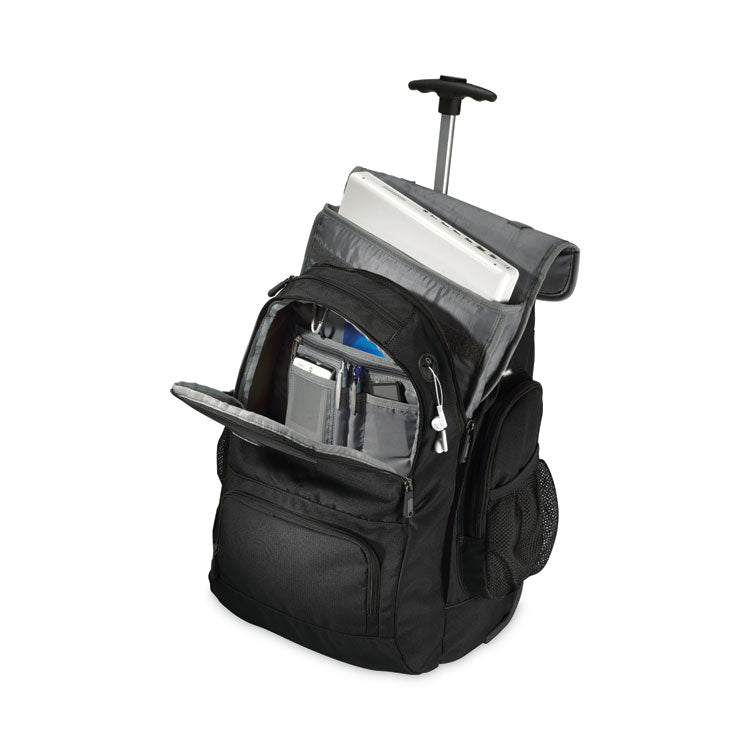 Rolling Backpack, Fits Devices Up to 15.6", Polyester, 14 x 8 x 21, Black/Charcoal