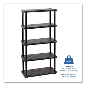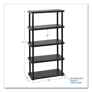 Rough n Ready Open Storage System, Five-Shelf, Blow-Molded HDPE, 36w x 18d x 74h, Black
