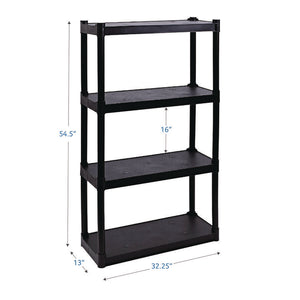Rough n Ready Open Storage System, Four-Shelf, Injection-Molded Polypropylene, 32w x 13d x 54h, Black