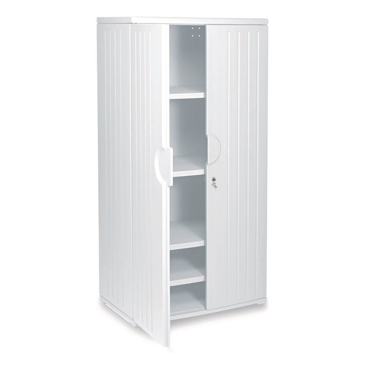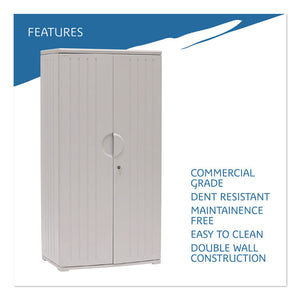 Durable, double-walled construction is resistant to dents, scratches, stains, chemicals and corrosion. Locking doors keep your storage space secure. Ergonomic handles are recessed for easy use. Made with tough, high-density blow-molded polyethylene. Easy assembly with minimal tools.