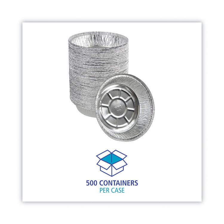 Round Aluminum To-Go Containers, 250 Gauge, 24 oz, 7" Diameter x 1.47" h, Silver, 500/Carton