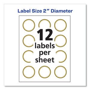 Round Labels, 2" dia, White with Gold Border, 12/Sheet, 10 Sheets/Pack