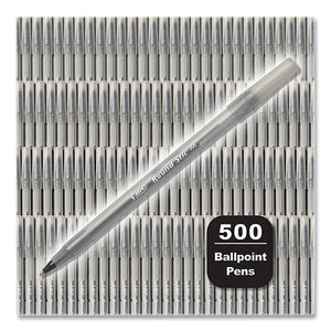 Round Stic Xtra Life Ballpoint Pen, Stick, Medium 1 mm, Black Ink, Translucent Black Barrel, 500/Pack