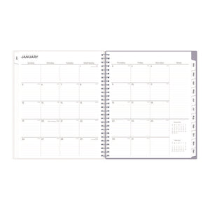 Add a touch of style to getting organized. Durable, coated monthly calendar tabs allow for easy access to your month views while the two-page layout offers plenty of writing space for detailed scheduling throughout the calendar year. Six bonus past months allow for easy annual transitions. Frosted flexible front, solid back cover and twin-wire binding finishes the look and ensures easy page turning. Printed with soy-based ink.