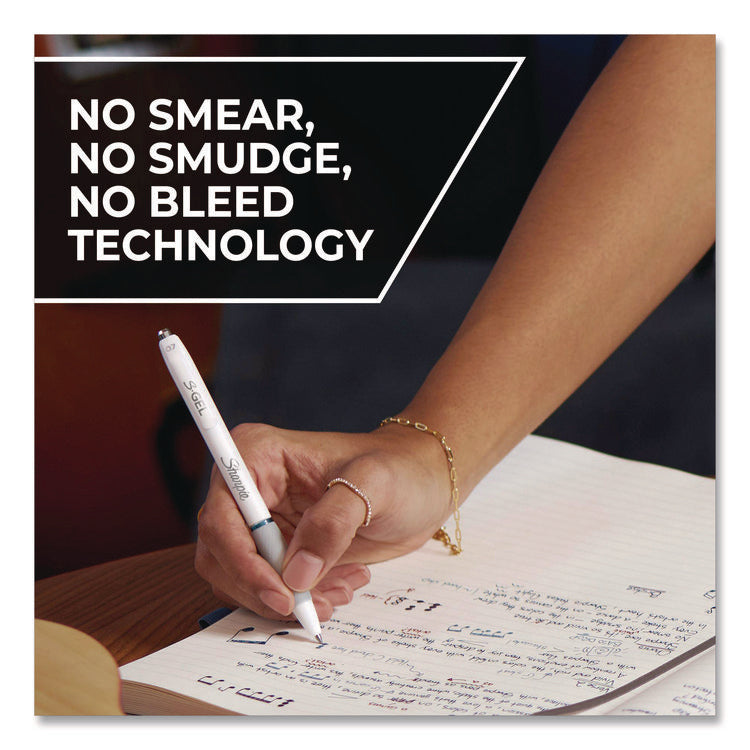 The power of Sharpie is now in a gel pen with the Sharpie S-Gel. With no-smear, no-bleed technology and bold, best-in-class ink, this Sharpie pen delivers always-vivid writing. It's a high-performance gel pen with a sleek, professional look that makes it a writing instrument you won't want to loan out. The contoured rubber grip makes for comfortable writing during any task. Sharpie S-Gel offers a smooth writing experience perfect for homes, schools or offices.