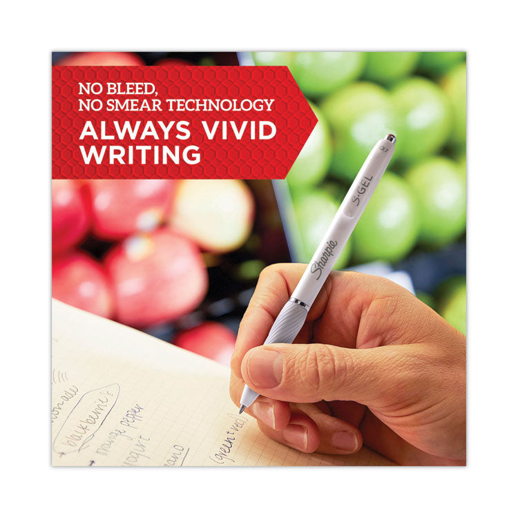 The power of Sharpie is now in a gel pen with the Sharpie S-Gel. With no-smear, no-bleed technology and bold, best-in-class ink, this Sharpie pen delivers always-vivid writing. It's a high-performance gel pen with a sleek, professional look that makes it a writing instrument you won't want to loan out. The contoured rubber grip makes for comfortable writing during any task. Sharpie S-Gel offers a smooth writing experience perfect for homes, schools or offices.