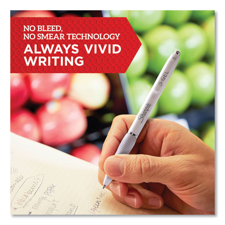 The power of Sharpie is now in a gel pen with the Sharpie S-Gel. With no-smear, no-bleed technology and bold, best-in-class ink, this Sharpie pen delivers always-vivid writing. It's a high-performance gel pen with a sleek, professional look that makes it a writing instrument you won't want to loan out. The contoured rubber grip makes for comfortable writing during any task. Sharpie S-Gel offers a smooth writing experience perfect for homes, schools or offices.
