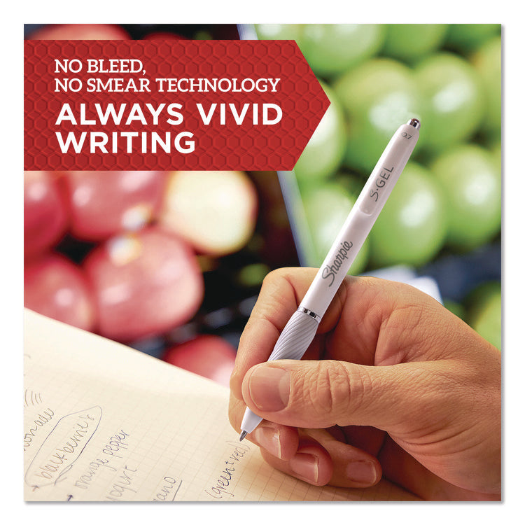 The power of Sharpie is now in a gel pen with the Sharpie S-Gel. With no-smear, no-bleed technology and bold, best-in-class ink, this Sharpie pen delivers always-vivid writing. It's a high-performance gel pen with a sleek, professional look that makes it a writing instrument you won't want to loan out. The contoured rubber grip makes for comfortable writing during any task. Sharpie S-Gel offers a smooth writing experience perfect for homes, schools or offices.