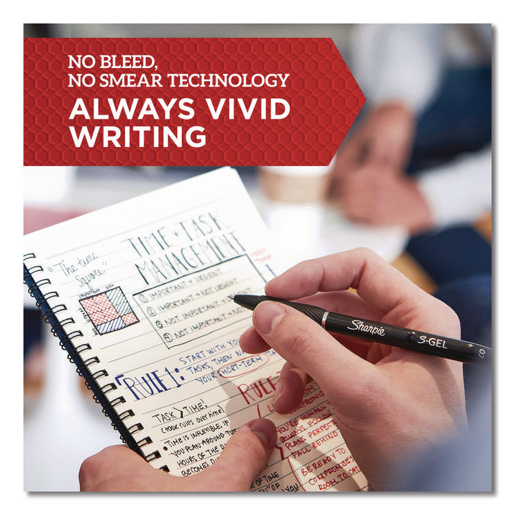 The power of Sharpie is now in a gel pen with the Sharpie S-Gel. With no-smear, no-bleed technology and bold, excellent ink, this Sharpie S-Gel pen delivers always-vivid writing. This pen is a high-performance gel pen with a sleek, professional look that makes it a writing instrument you won't want to loan out. The contoured rubber grip makes for comfortable writing during any task. Sharpie S-Gel offers a smooth writing experience perfect for homes, schools, or offices.