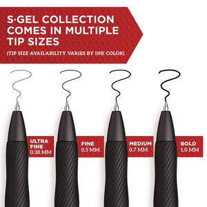 The power of Sharpie is now in a gel pen with the Sharpie S-Gel. With no smear, no bleed technology and bold, best-in-class ink, this Sharpie pen delivers always-vivid writing. It's a high-performance gel pen with a sleek, professional look that makes it a writing instrument you won't want to loan out. And the contoured rubber grip makes for comfortable writing during any task. Available in multiple point sizes, barrel finishes and gel ink colors, Sharpie S-Gel offers a smooth writing experience perfect for homes, schools, or offices.