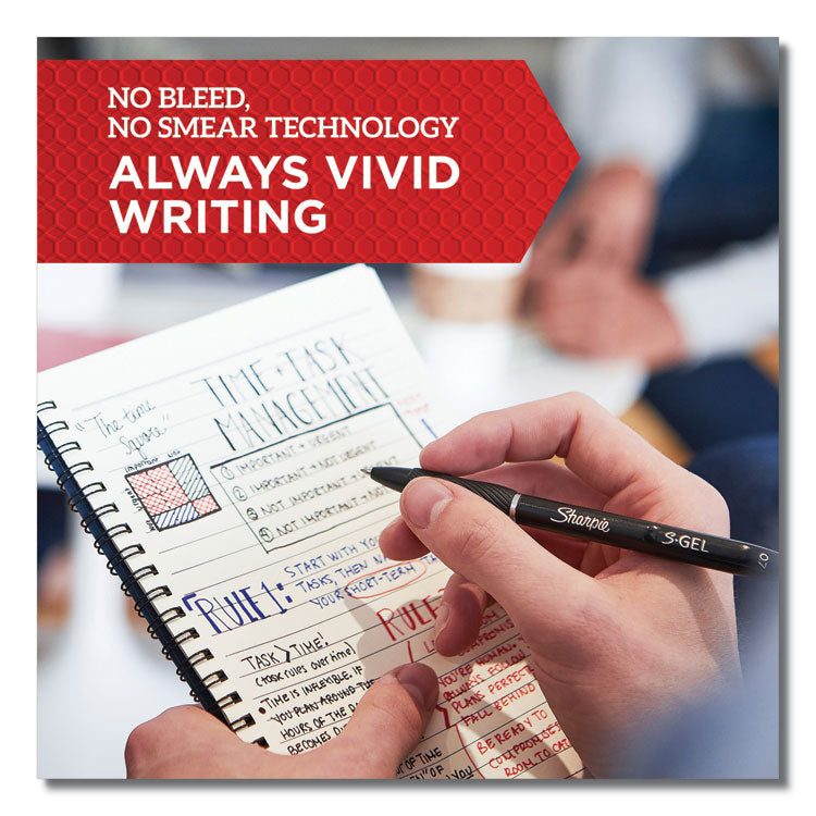 The power of Sharpie is now in a gel pen with the Sharpie S-Gel. With no smear, no bleed technology and bold, best-in-class ink, this Sharpie pen delivers always-vivid writing. It's a high-performance gel pen with a sleek, professional look that makes it a writing instrument you won't want to loan out. And the contoured rubber grip makes for comfortable writing during any task. Available in multiple point sizes, barrel finishes and gel ink colors, Sharpie S-Gel offers a smooth writing experience perfect for homes, schools, or offices.