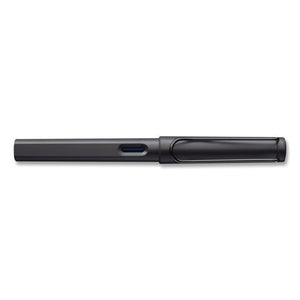 Enjoying a cult status that's atypical for a writing instrument, the LAMY safari Fountain Pen has been a beloved classic since its introduction. More than the sum of its parts, it's aesthetically pleasing, perfectly ergonomic, robustly constructed and entirely individual. Impact-resistant, ABS plastic housing, though generally round, features flattened panels that provide a modern appearance while keeping the pen from rolling away when set down. A smooth, multifaceted grip zone ensures optimal hand positioning for fatigue-free writing, and a near-end ink-level window lets you know when it's time to reach for a replacement cartridge. Durable stainless-steel nib provides smooth-writing performance; and when on the go, a distinctive, self-sprung metal pocket clip keeps the pen securely fastened.