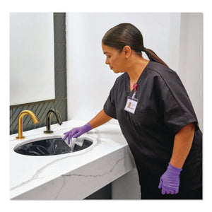 Pre-moistened, ready-to-use wipes are ideal for cleaning and disinfecting high-risk areas in one easy step. Bleach-based germicide eliminates 50 varieties of viruses, bacteria and fungi in four minutes or less, including multi-drug resistant bacteria, Clostridium difficile spores, Norovirus and tuberculosis. Clear- and clean-drying formula works wonderfully in all environments, from examination and patient rooms to kitchens and bathrooms. Prominent contact time labeling on all packaging types enables easy identification for improved compliance with accreditation standards.