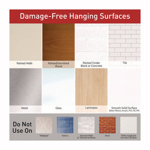 - Holds strongly on a variety of smooth indoor surfaces including painted walls, smooth ceilings, finished wood, glass, tile and metal.