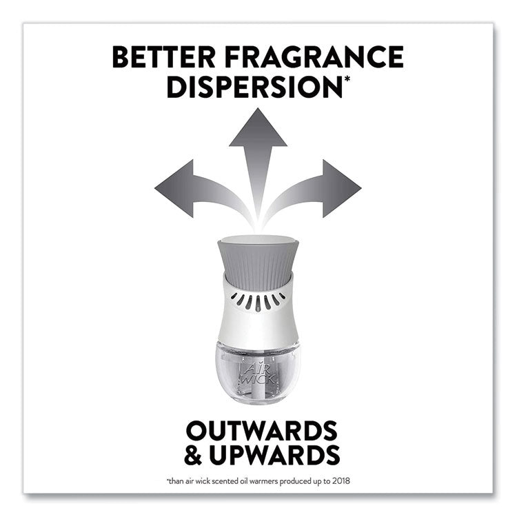 Leave a lasting impression on guests and ensure a consistent experience with Air Wick Scented Oil Refills with Essential Oils. Keep supply rooms stocked with the pleasant scents your guests come to associate with your business. Get up to 60 days per refill, on the lowest warmer setting, of natural-smelling fragrance with essential oil-infused formulas. Easily refill the Air Wick plug-in warmer by unscrewing the cap and inserting the refill until it clicks. Adjust the warmer settings to ensure the optimal fragrance for each room. Enhance entrances, common areas, offices, breakrooms and guest rooms with pleasant scents.