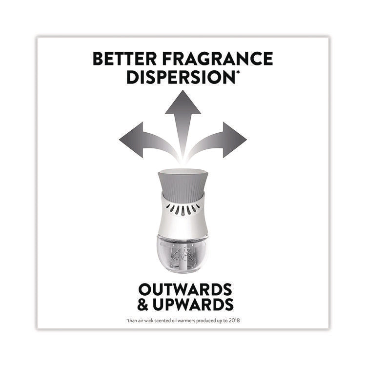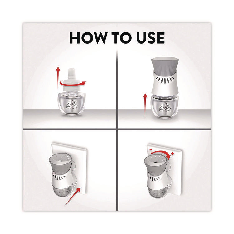 Leave a lasting impression on guests and ensure a consistent experience with Air Wick Scented Oil Refills with Essential Oils. Keep supply rooms stocked with the pleasant scents your guests come to associate with your business. Get up to 60 days per refill, on the lowest warmer setting, of natural-smelling fragrance with essential oil-infused formulas. Easily refill the Air Wick plug-in warmer by unscrewing the cap and inserting the refill until it clicks. Adjust the warmer settings to ensure the optimal fragrance for each room. Enhance entrances, common areas, offices, breakrooms and guest rooms with pleasant scents.