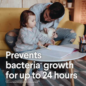 - These disinfecting wipes' clear drying formula breaks down grease, soap, scum, and grime so you can tackle any surface with confidence and prevents bacteria growth for up to 24 hours.