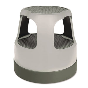 Scooter Stool, Round, 2-Step, Step and Lock Wheels, 300 lb Capacity, 15" Working Height, Gray
