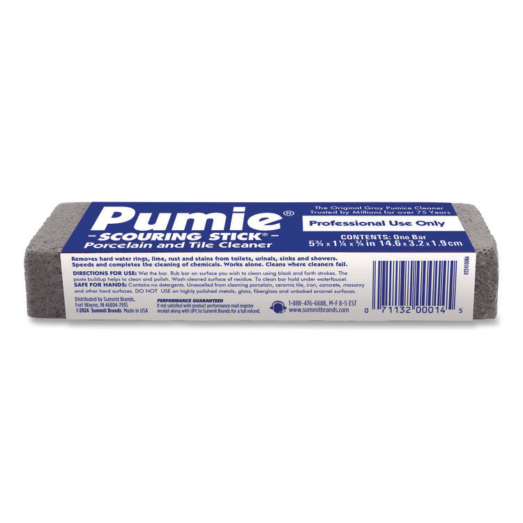 Pumie® Scouring Stick® tackles tough stains and buildups, excelling as a toilet scrubber and septic-safe cleaner. Removes stubborn toilet bowl rings and stains without harming tubs, sinks, and showers. This versatile tool also acts as a powerful rust stain remover, restoring bathtubs and surfaces to a spotless state. Effectively combats hard water stains and limescale thanks to its natural abrasive action. Free from harsh chemicals, Pumie® is a safe, non-toxic choice and aligns with the growing demand for cleaning solutions that are both effective and mindful of health impacts. Pumie® has been a trusted choice for more than 75 years among commercial janitorial and sanitation professionals, ensuring it's more than capable of handling the toughest stains and buildups.