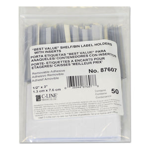 Self-Adhesive Label Holders, Top Load, 0.5 x 3, Clear, 50/Pack