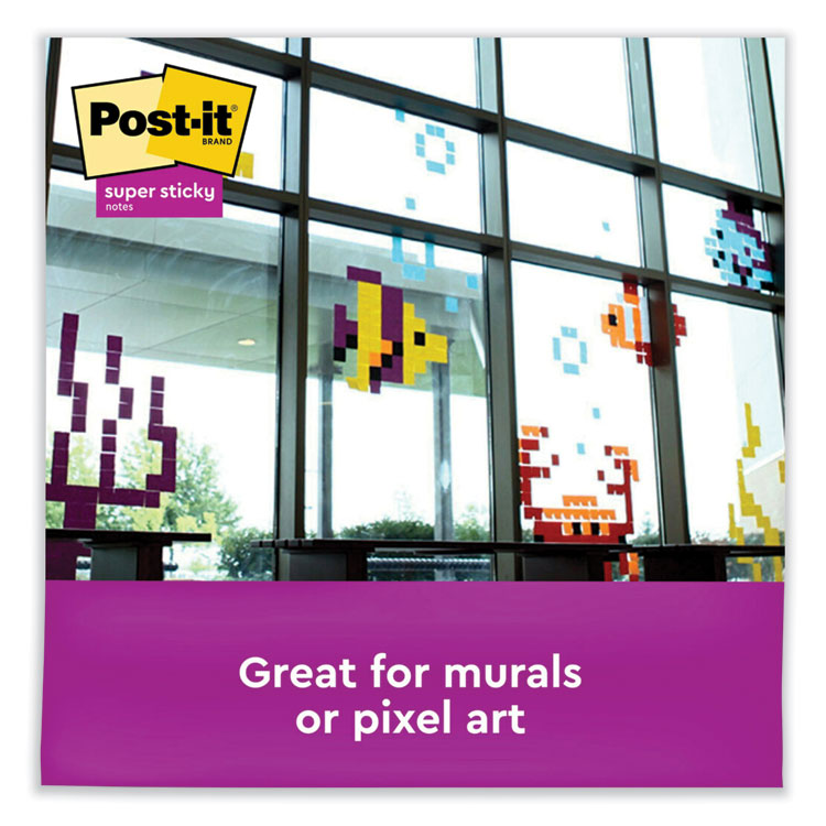Experience the power of 2X stickiness. Super Sticky Notes stick to practically everything, everywhere! Revolutionary technology ensures your notes will stick securely to most surfaces yet remove cleanly! Versatile and essential, they're the perfect solution for lists, reminders, color-coding, labeling, brainstorming, storyboarding and even mural art. As they adhere firmly to walls, windows, doors, worksurfaces, mirrors and more, you can stick and restick them wherever they're most likely to be noticed. To enhance your note-taking experience, download the free Post-it® App to your smartphone or tablet and instantly capture, save and share your important notes.