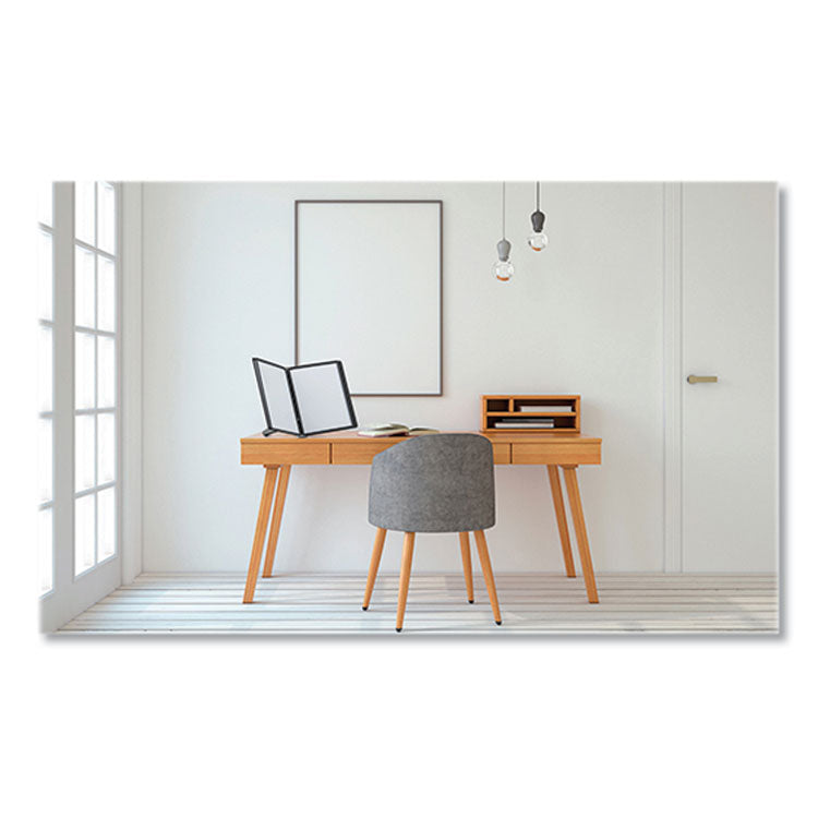 - Includes black desk, bracket, and five double-sided sleeves with a 10-page sheet capacity so critical paperwork is always within reach.