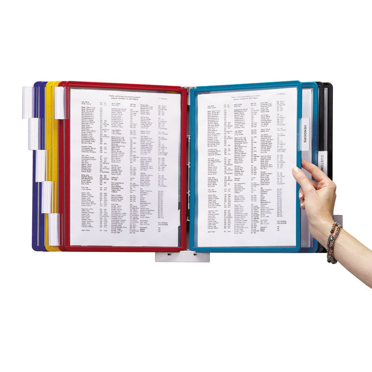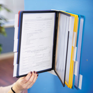Unlock effortless organization with the SHERPA® Wall Mounted Reference Display System from DURABLE®. This German-designed organizational tool is meticulously crafted for anyone seeking unparalleled efficiency. Made with German precision, this desktop reference display system is a testament to quality, ensuring lasting durability. Say goodbye to flimsy alternatives and embrace the reliability of SHERPA. Experience efficiency at your fingertips with easy-load, glare-free, and scratch-resistant pockets. Each high-quality sleeve is engineered to keep your documents crease and tear-free, even with frequent handling. The angled wall bracket keeps sleeves open, ensuring easy access and visibility to documents. With 10 pockets capable of displaying up to 20 letter-size sheets, SHERPA is the go-to solution for organizing schedules, SOPs, directories, class lists, instructions, charts, maps, emergency numbers, menus, team rosters--any frequently referenced paperwork. The 10 snap-on tabs further enhance organization. SHERPA understands the dynamic needs of your workspace. The expandable design allows you to connect multiple systems (sold separately) seamlessly using extension brackets--no tools required. Customize your setup to fit the unique demands of your environment, creating a clutter-free and efficient workspace within arm’s reach. For over 100 years, DURABLE has been synonymous with quality, design, and functionality. As a testament to this legacy, DURABLE products combine innovative design with a wealth of experience. Trust in a brand that understands the importance of organization for enhancing productivity. Bring order to your daily routine and make referencing crucial information a breeze. Choose SHERPA for an organized, streamlined, and optimized workspace. Choose DURABLE and experience the difference that quality and innovation can make.