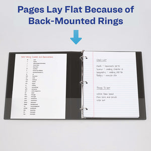 - Pages lie flat and turn easily in the binder with back mounted rings.
