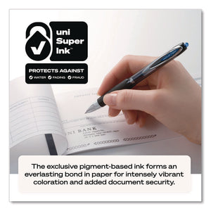 Stock your office, home or classroom with 207 Retractable Gel Pens from uni-ball with a stainless steel tip that resists bending and breaking. Even-flowing, pigment-based gel ink delivers a smooth writing experience for intense, vibrant lines, ensuring that every mark is brilliantly communicated. Use these retractable gel pens for everyday writing tasks, check signing and all of your important signatures, trusting its quick-drying uni Super Ink. Innovative uni Super Ink technology effectively entraps the gel ink into the paper, producing fraud, fade and water-resistant documents that resist check washing or bleaching. A textured grip offers greater comfort and control as you continue writing, while a translucent ink window indicates the level of gel ink remaining, so you don't run out unexpectedly. The sleek design of the 207 with modern metal accents gives the retractable gel pen a stylish touch.