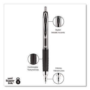 Stock your office, home or classroom with 207 Retractable Gel Pens from uni-ball with a stainless steel tip that resists bending and breaking. Even-flowing, pigment-based gel ink delivers a smooth writing experience for intense, vibrant lines, ensuring that every mark is brilliantly communicated. Use these retractable gel pens for everyday writing tasks, check signing and all of your important signatures, trusting its quick-drying uni Super Ink. Innovative uni Super Ink technology effectively entraps the gel ink into the paper, producing fraud, fade and water-resistant documents that resist check washing or bleaching. A textured grip offers greater comfort and control as you continue writing, while a translucent ink window indicates the level of gel ink remaining, so you don't run out unexpectedly. The sleek design of the 207 with modern metal accents gives the retractable gel pen a stylish touch.