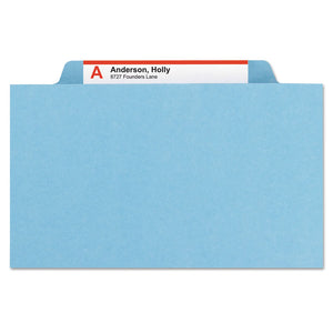 Six-Section Pressboard Top Tab Classification Folders, Six SafeSHIELD Fasteners, 2 Dividers, Letter Size, Blue, 10/Box