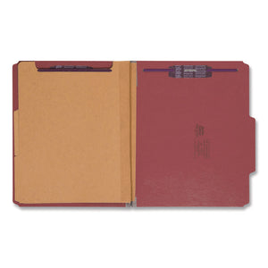 Six-Section Pressboard Top Tab Classification Folders, Six SafeSHIELD Fasteners, 2 Dividers, Letter Size, Bright Red, 10/Box
