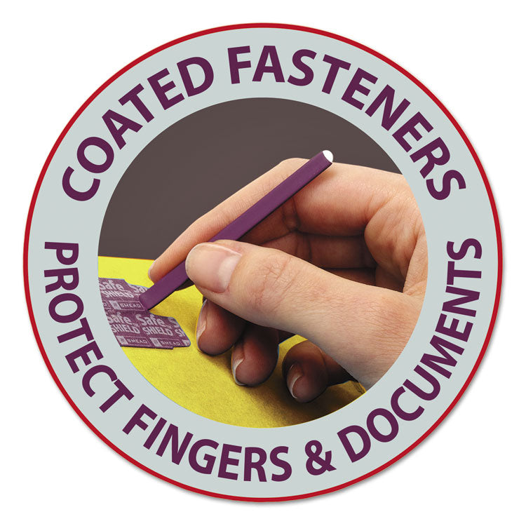 - Partition folders with patented SafeSHIELD coated fasteners help prevent finger cuts, eliminate paper tears and reduce excessive fastener crinkling.