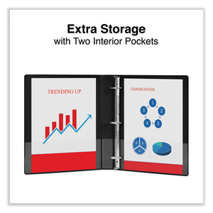 Neatly store and access your filing documents with standard view binders. Slanted D-rings allow smooth page turning and hold more documents than the same-size, round rings. Open and close triggers provide fast, nearly effortless access to single sheets. The oversized, transparent, panels provide endless customization options. The view binders cover tabbed dividers, sheet protectors, and other organization accessories. Interior includes two pockets for convenient access to single pages and reference materials. Constructed with nonstick, archival-safe material that's designed to prevent ink from being lifted off printed pages.