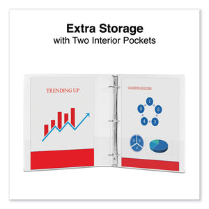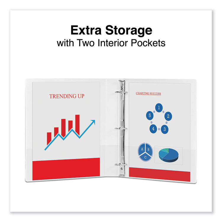Neatly store and access your filing documents with standard view binders. Slanted D-rings allow smooth page turning and hold more documents than the same-size, round rings. Open and close triggers provide fast, nearly effortless access to single sheets. The oversized, transparent, panels provide endless customization options. The view binders cover tabbed dividers, sheet protectors, and other organization accessories. Interior includes two pockets for convenient access to single pages and reference materials. Constructed with nonstick, archival-safe material that's designed to prevent ink from being lifted off printed pages.