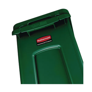 Slim Jim Plastic Recycling Container with Venting Channels, 23 gal, Plastic, Green
